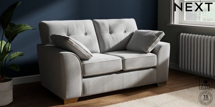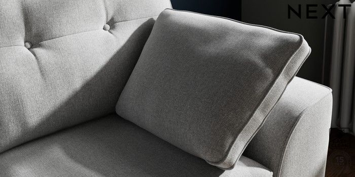 7.2.10 Stamford Buttoned Back 2 Seater Small Sofa Tweedy Blend Easy Clean Light Silver Grey Large Square Angle - Brushed Brass | Made Click here to use our website with more accessibility support, for example screen readers