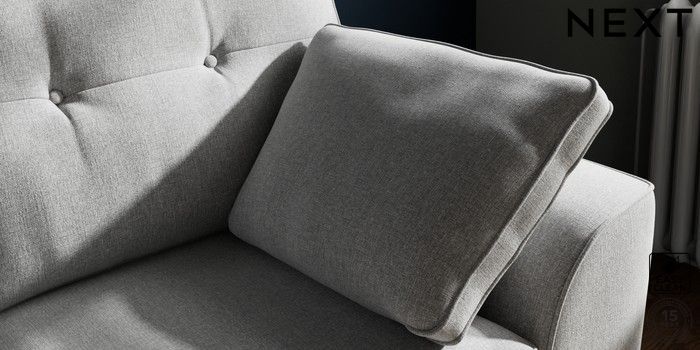 7.2.10 Stamford Buttoned Back 2 Seater Small Sofa Tweedy Blend Easy Clean Light Silver Grey Large Square Angle - Dark | Made Click here to use our website with more accessibility support, for example screen readers