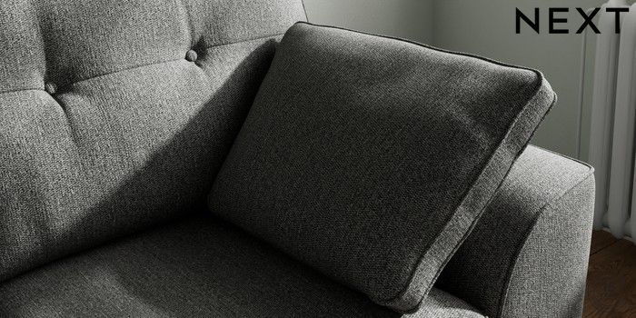 7.2.10 Stamford Buttoned Back 2 Seater Small Sofa Tweedy Chenille Dark Grey Large Square Angle - Light | Made Click here to use our website with more accessibility support, for example screen readers