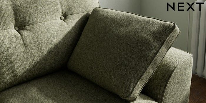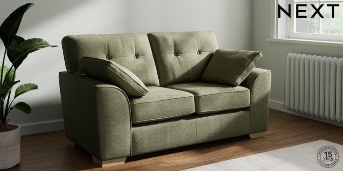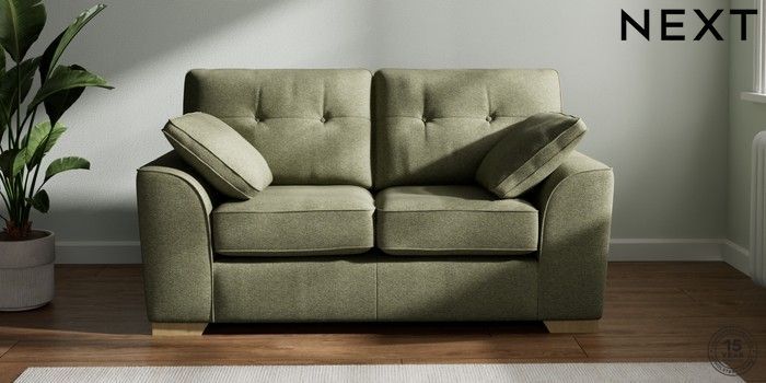 7.2.10 Stamford Buttoned Back 2 Seater Small Sofa Tweedy Chenille Mid Moss Green Large Square Angle - Light | Made Click here to use our website with more accessibility support, for example screen readers