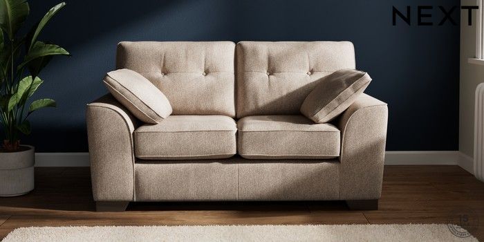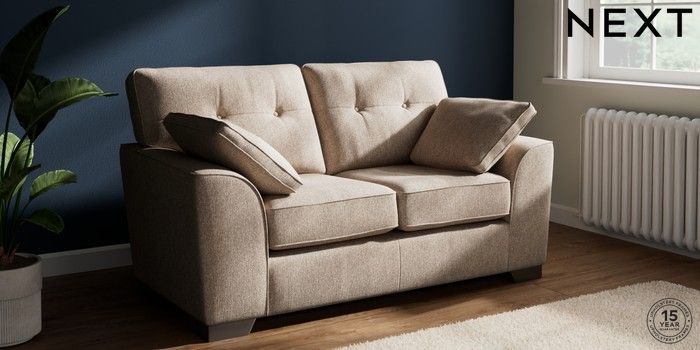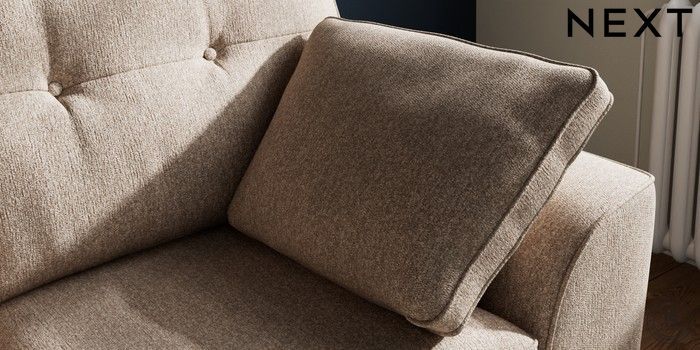 7.2.10 Stamford Buttoned Back 2 Seater Small Sofa Tweedy Chenille Mid Natural Large Square Angle - Gunmetal | Made Click here to use our website with more accessibility support, for example screen readers