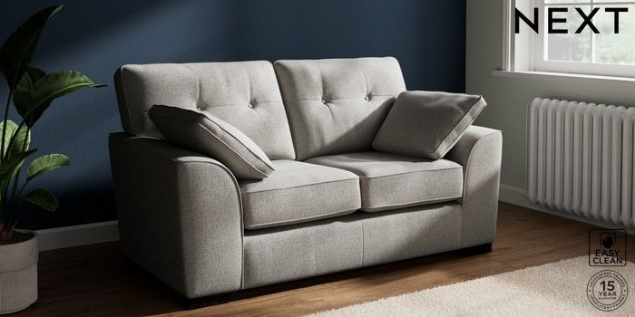 7.2.10 Stamford Buttoned Back 2 Seater Small Sofa Woven Chenille Easy Clean Light Grey Large Square Angle - Dark | Made Click here to use our website with more accessibility support, for example screen readers