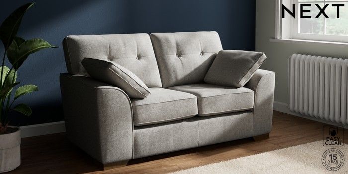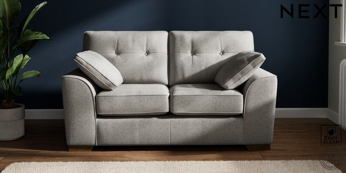 7.2.10 Stamford Buttoned Back 2 Seater Small Sofa Woven Chenille Easy Clean Light Grey Large Square Angle - Mid | Made Click here to use our website with more accessibility support, for example screen readers
