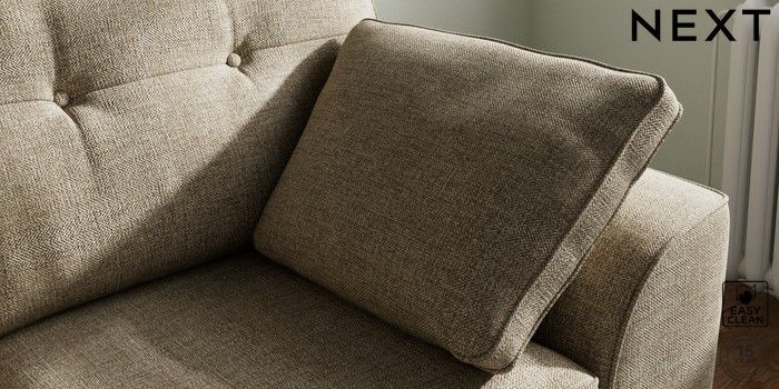 7.2.10 Stamford Buttoned Back 2 Seater Small Sofa Woven Chenille Easy Clean Mid Natural Large Square Angle - Gunmetal | Made Click here to use our website with more accessibility support, for example screen readers