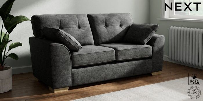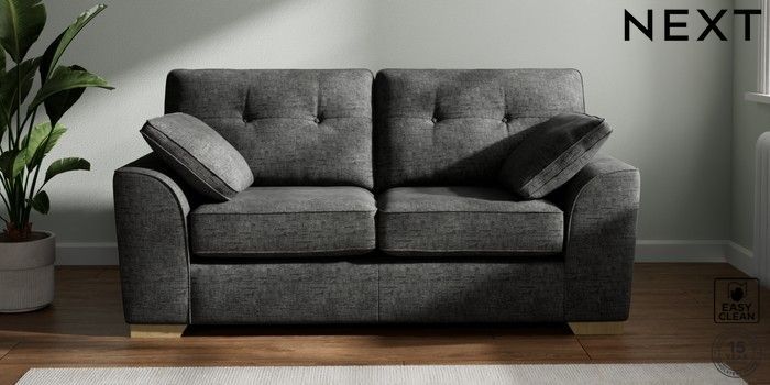 7.2.10 Stamford Buttoned Back 2 Seater Sofa Boucle Weave Easy Clean Charcoal Grey Large Square Angle - Light | Made Click here to use our website with more accessibility support, for example screen readers