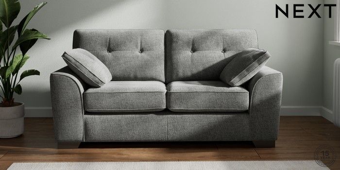 7.2.10 Stamford Buttoned Back 2 Seater Sofa Chunky Chenille Dark Grey Large Square Angle - Gunmetal | Made Click here to use our website with more accessibility support, for example screen readers
