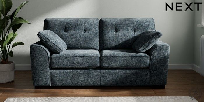 7.2.10 Stamford Buttoned Back 2 Seater Sofa Chunky Chenille Dark Navy Blue Large Square Angle - Dark | Made Click here to use our website with more accessibility support, for example screen readers