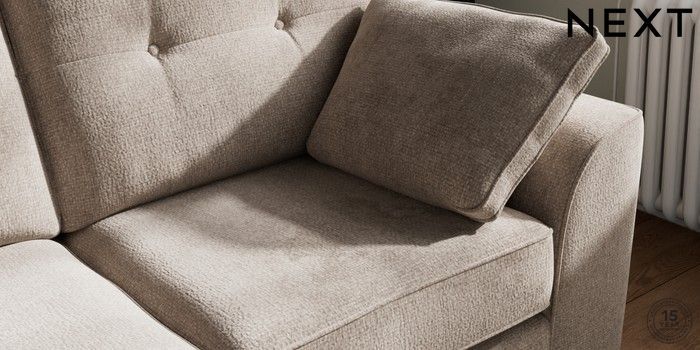 7.2.10 Stamford Buttoned Back 2 Seater Sofa Chunky Chenille Light Dove Large Square Angle - Brushed Brass | Made Click here to use our website with more accessibility support, for example screen readers