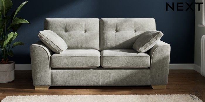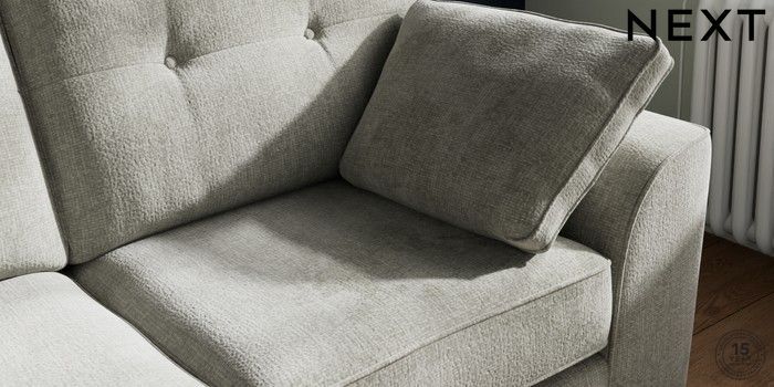 7.2.10 Stamford Buttoned Back 2 Seater Sofa Chunky Chenille Light Grey Large Square Angle - Light | Made Click here to use our website with more accessibility support, for example screen readers