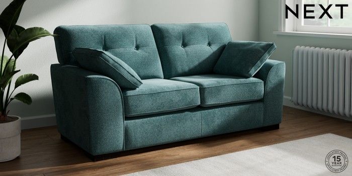 7.2.10 Stamford Buttoned Back 2 Seater Sofa Chunky Chenille Mid Teal Green Large Square Angle - Dark | Made Click here to use our website with more accessibility support, for example screen readers