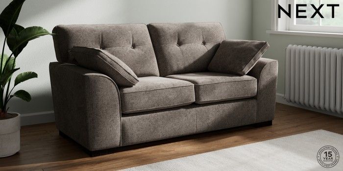 7.2.10 Stamford Buttoned Back 2 Seater Sofa Chunky Chenille Mink Brown Large Square Angle - Dark | Made Click here to use our website with more accessibility support, for example screen readers