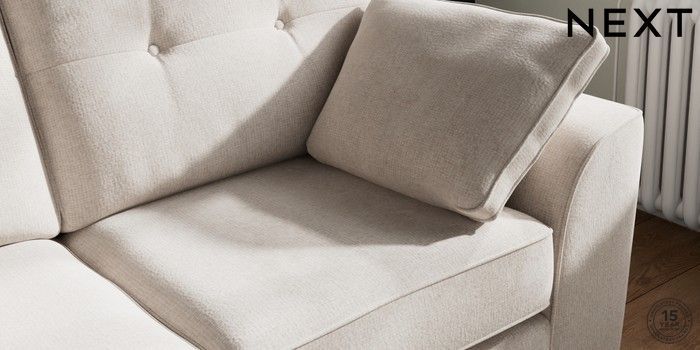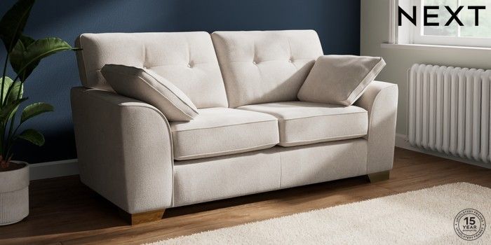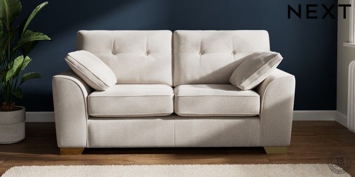 7.2.10 Stamford Buttoned Back 2 Seater Sofa Chunky Chenille Oyster Large Square Angle - Brushed Brass | Made Click here to use our website with more accessibility support, for example screen readers