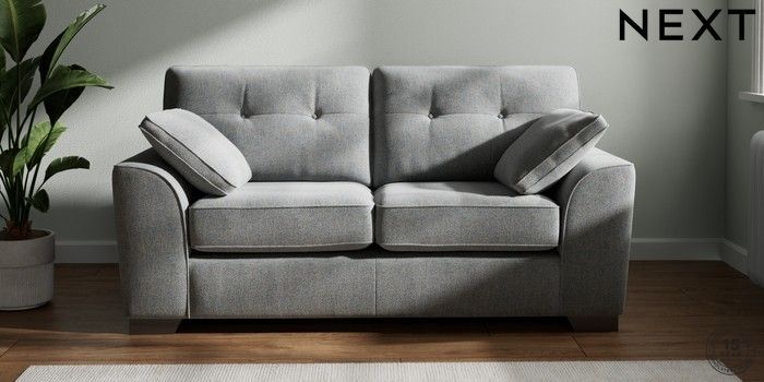 7.2.10 Stamford Buttoned Back 2 Seater Sofa Chunky Marl Mid Grey Large Square Angle - Gunmetal | Made Click here to use our website with more accessibility support, for example screen readers
