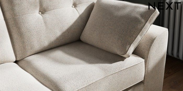 7.2.10 Stamford Buttoned Back 2 Seater Sofa Chunky Marl Oyster Large Square Angle - Chrome Metal | Made Click here to use our website with more accessibility support, for example screen readers