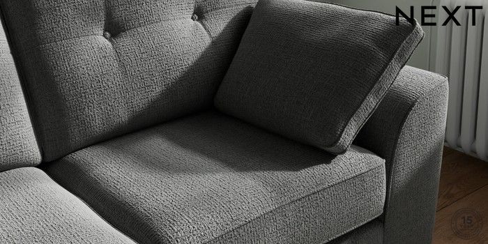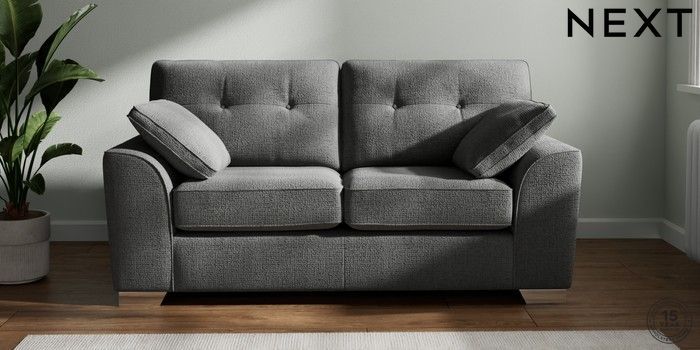 7.2.10 Stamford Buttoned Back 2 Seater Sofa Chunky Texture Dark Grey Large Square Angle - Chrome Metal | Made Click here to use our website with more accessibility support, for example screen readers