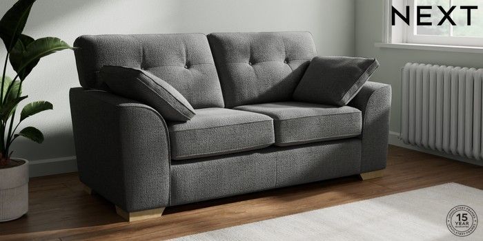 7.2.10 Stamford Buttoned Back 2 Seater Sofa Chunky Texture Dark Grey Large Square Angle - Light | Made Click here to use our website with more accessibility support, for example screen readers