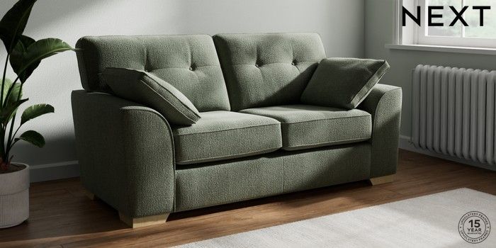 7.2.10 Stamford Buttoned Back 2 Seater Sofa Chunky Texture Mid Forest Green Large Square Angle - Light | Made Click here to use our website with more accessibility support, for example screen readers