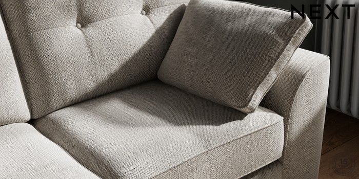 7.2.10 Stamford Buttoned Back 2 Seater Sofa Chunky Weave Dove Grey Large Square Angle - Brushed Brass | Made Click here to use our website with more accessibility support, for example screen readers