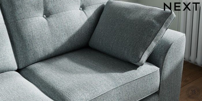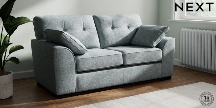7.2.10 Stamford Buttoned Back 2 Seater Sofa Chunky Weave Mid Blue Large Square Angle - Dark | Made Click here to use our website with more accessibility support, for example screen readers