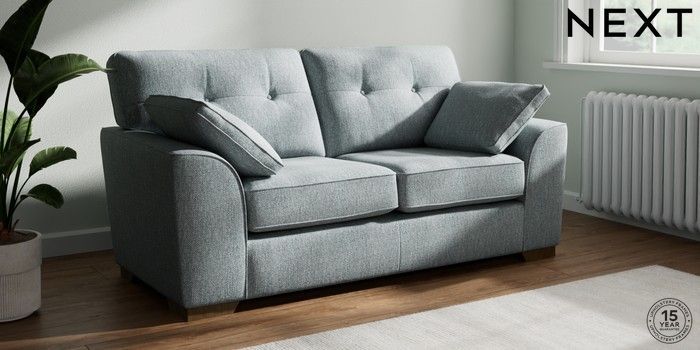 7.2.10 Stamford Buttoned Back 2 Seater Sofa Chunky Weave Mid Blue Large Square Angle - Mid | Made Click here to use our website with more accessibility support, for example screen readers