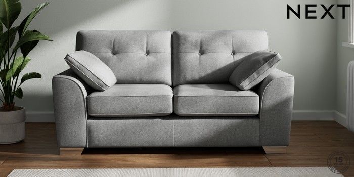 7.2.10 Stamford Buttoned Back 2 Seater Sofa Chunky Weave Mid Grey Large Square Angle - Chrome Metal | Made Click here to use our website with more accessibility support, for example screen readers