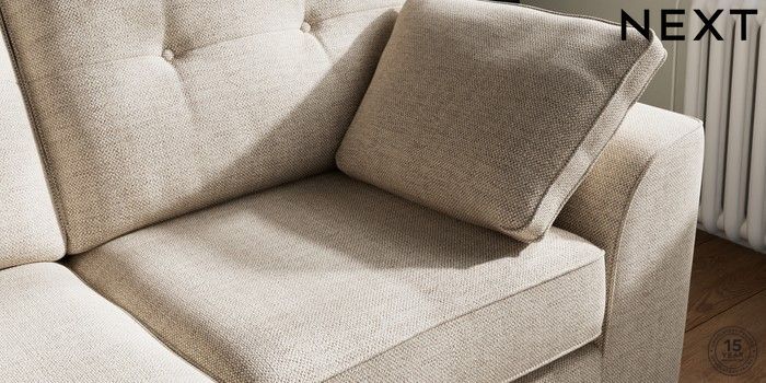 7.2.10 Stamford Buttoned Back 2 Seater Sofa Chunky Weave Mid Natural Large Square Angle - Brushed Brass | Made Click here to use our website with more accessibility support, for example screen readers