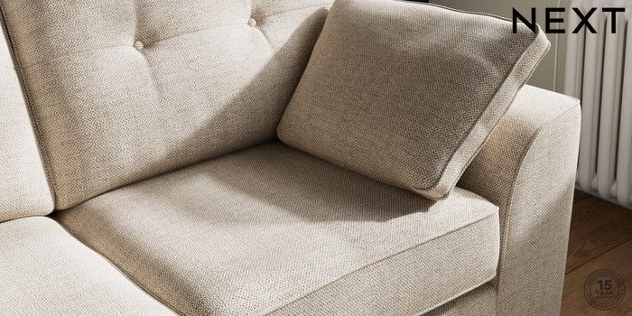 7.2.10 Stamford Buttoned Back 2 Seater Sofa Chunky Weave Mid Natural Large Square Angle - Gunmetal | Made Click here to use our website with more accessibility support, for example screen readers