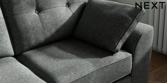 7.2.10 Stamford Buttoned Back 2 Seater Sofa Cotswold Chenille Dark Grey Large Square Angle - Chrome Metal | Made Click here to use our website with more accessibility support, for example screen readers