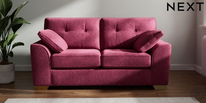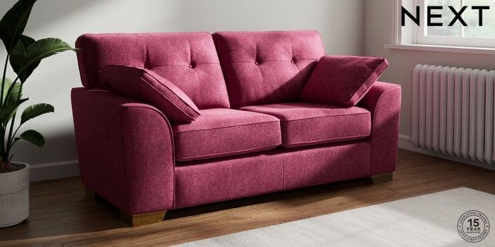 7.2.10 Stamford Buttoned Back 2 Seater Sofa Cotswold Chenille Dark Raspberry Pink Large Square Angle - Brushed Brass | Made Click here to use our website with more accessibility support, for example screen readers