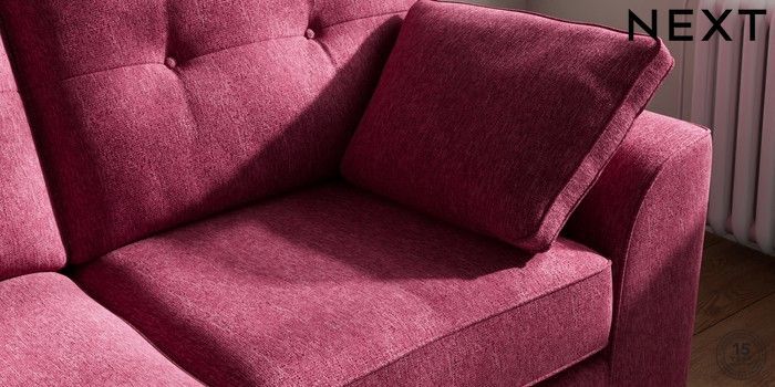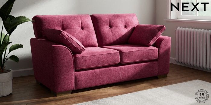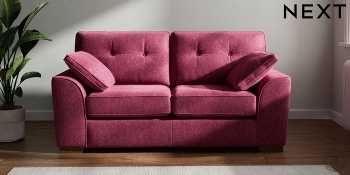 7.2.10 Stamford Buttoned Back 2 Seater Sofa Cotswold Chenille Dark Raspberry Pink Large Square Angle - Mid | Made Click here to use our website with more accessibility support, for example screen readers