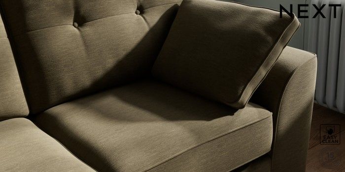 7.2.10 Stamford Buttoned Back 2 Seater Sofa Fine Chenille Easy Clean Dark Moss Green Large Square Angle - Brushed Brass | Made Click here to use our website with more accessibility support, for example screen readers