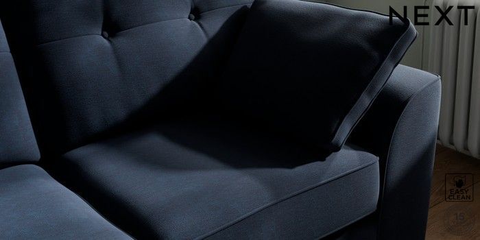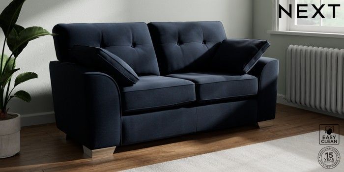 7.2.10 Stamford Buttoned Back 2 Seater Sofa Fine Chenille Easy Clean Dark Navy Blue Large Square Angle - Chrome Metal | Made Click here to use our website with more accessibility support, for example screen readers
