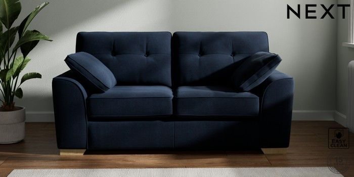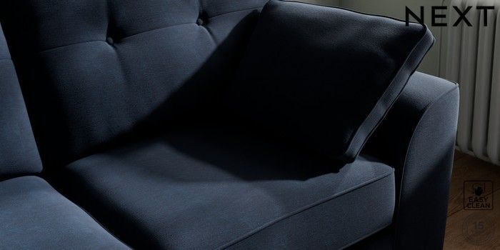 7.2.10 Stamford Buttoned Back 2 Seater Sofa Fine Chenille Easy Clean Dark Navy Blue Large Square Angle - Light | Made Click here to use our website with more accessibility support, for example screen readers