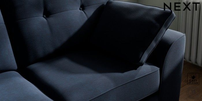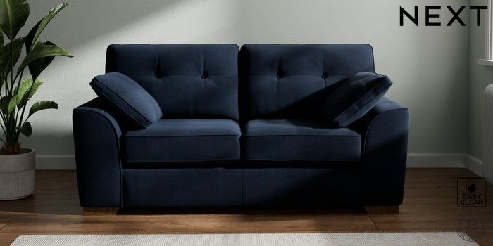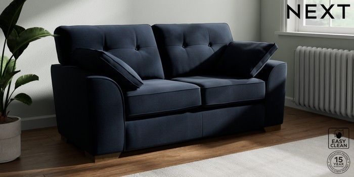 7.2.10 Stamford Buttoned Back 2 Seater Sofa Fine Chenille Easy Clean Dark Navy Blue Large Square Angle - Mid | Made Click here to use our website with more accessibility support, for example screen readers
