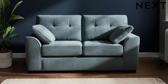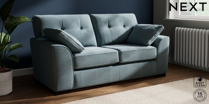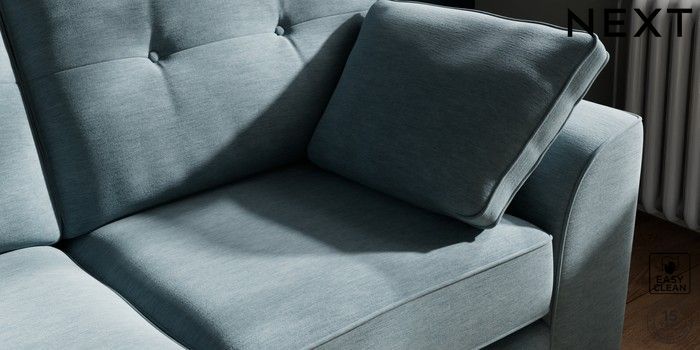 7.2.10 Stamford Buttoned Back 2 Seater Sofa Fine Chenille Easy Clean Mid Blue Large Square Angle - Dark | Made Click here to use our website with more accessibility support, for example screen readers