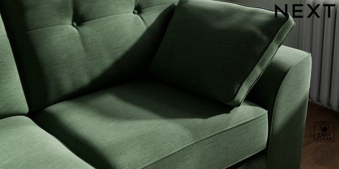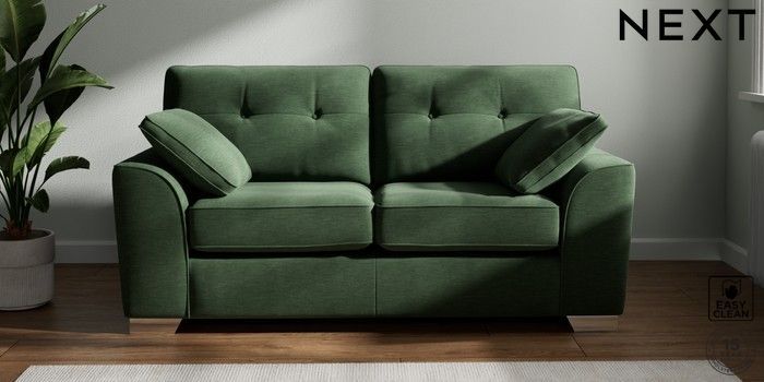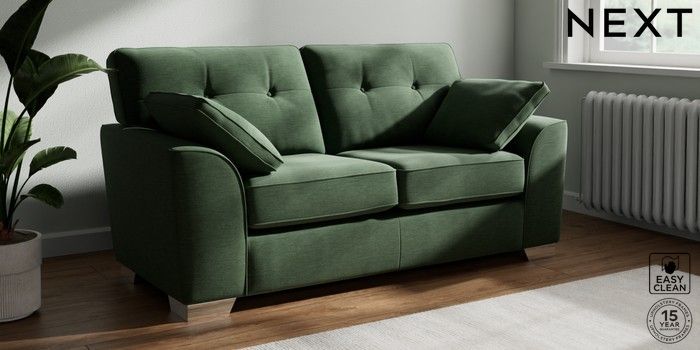 7.2.10 Stamford Buttoned Back 2 Seater Sofa Fine Chenille Easy Clean Mid Khaki Green Large Square Angle - Chrome Metal | Made Click here to use our website with more accessibility support, for example screen readers
