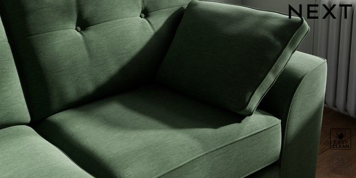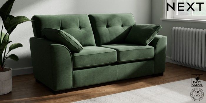 7.2.10 Stamford Buttoned Back 2 Seater Sofa Fine Chenille Easy Clean Mid Khaki Green Large Square Angle - Dark | Made Click here to use our website with more accessibility support, for example screen readers