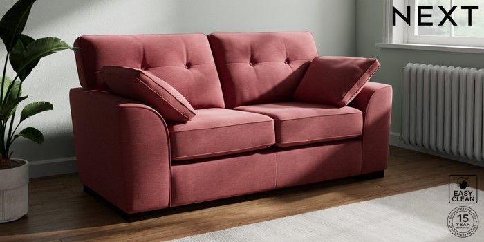 7.2.10 Stamford Buttoned Back 2 Seater Sofa Fine Chenille Easy Clean Mid Pink Large Square Angle - Dark | Made Click here to use our website with more accessibility support, for example screen readers