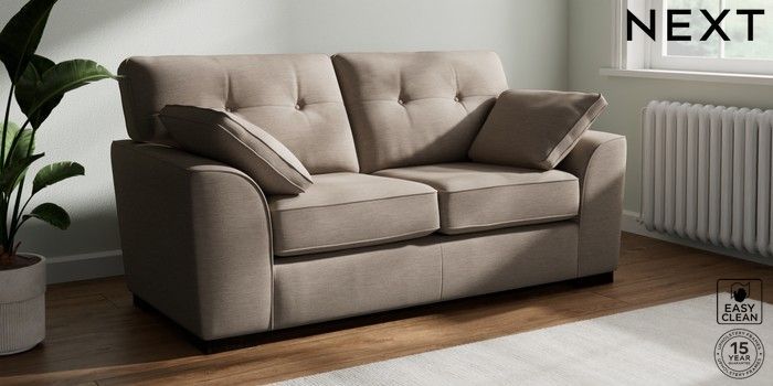 7.2.10 Stamford Buttoned Back 2 Seater Sofa Fine Chenille Easy Clean Mid Taupe Brown Large Square Angle - Dark | Made Click here to use our website with more accessibility support, for example screen readers