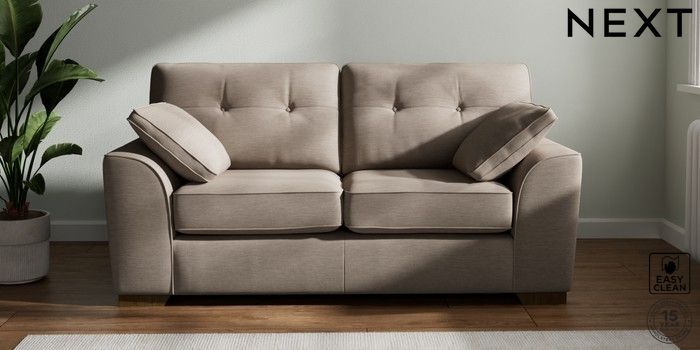 7.2.10 Stamford Buttoned Back 2 Seater Sofa Fine Chenille Easy Clean Mid Taupe Brown Large Square Angle - Mid | Made Click here to use our website with more accessibility support, for example screen readers