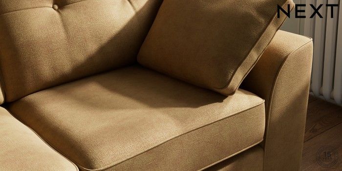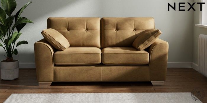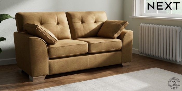 7.2.10 Stamford Buttoned Back 2 Seater Sofa Luxe Chenille Honey Yellow Large Square Angle - Chrome Metal | Made Click here to use our website with more accessibility support, for example screen readers