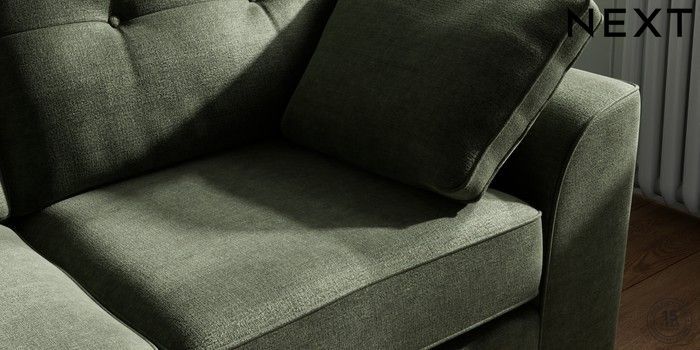 7.2.10 Stamford Buttoned Back 2 Seater Sofa Luxe Chenille Mid Green Large Square Angle - Light | Made Click here to use our website with more accessibility support, for example screen readers