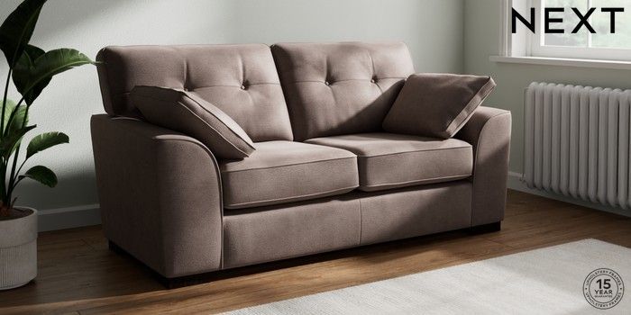 7.2.10 Stamford Buttoned Back 2 Seater Sofa Luxe Chenille Mink Brown Large Square Angle - Dark | Made Click here to use our website with more accessibility support, for example screen readers