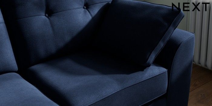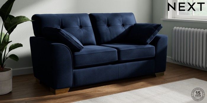 7.2.10 Stamford Buttoned Back 2 Seater Sofa Luxe Chenille Navy Blue Large Square Angle - Brushed Brass | Made Click here to use our website with more accessibility support, for example screen readers