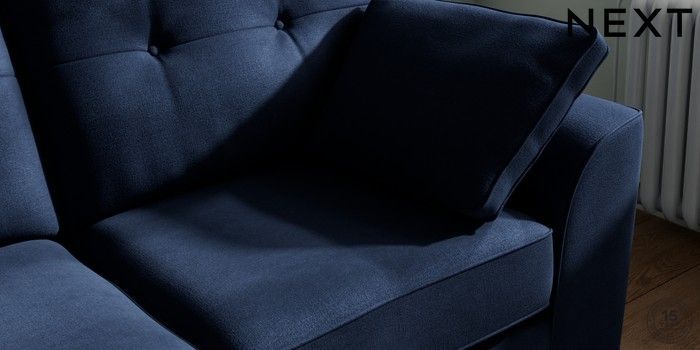 7.2.10 Stamford Buttoned Back 2 Seater Sofa Luxe Chenille Navy Blue Large Square Angle - Chrome Metal | Made Click here to use our website with more accessibility support, for example screen readers