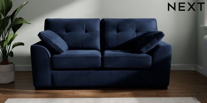7.2.10 Stamford Buttoned Back 2 Seater Sofa Luxe Chenille Navy Blue Large Square Angle - Dark | Made Click here to use our website with more accessibility support, for example screen readers