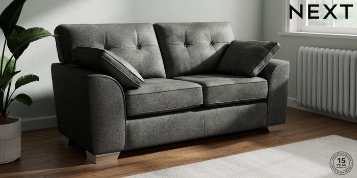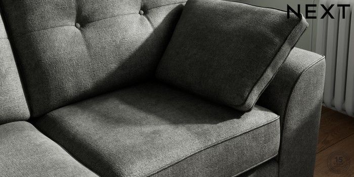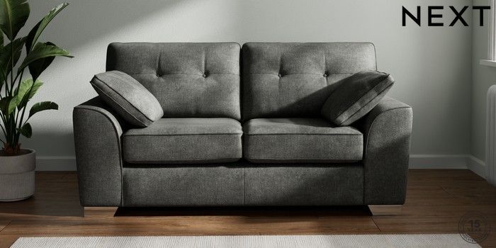 7.2.10 Stamford Buttoned Back 2 Seater Sofa Plush Chenille Dark Grey Large Square Angle - Chrome Metal | Made Click here to use our website with more accessibility support, for example screen readers