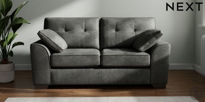 7.2.10 Stamford Buttoned Back 2 Seater Sofa Plush Chenille Dark Grey Large Square Angle - Gunmetal | Made Click here to use our website with more accessibility support, for example screen readers