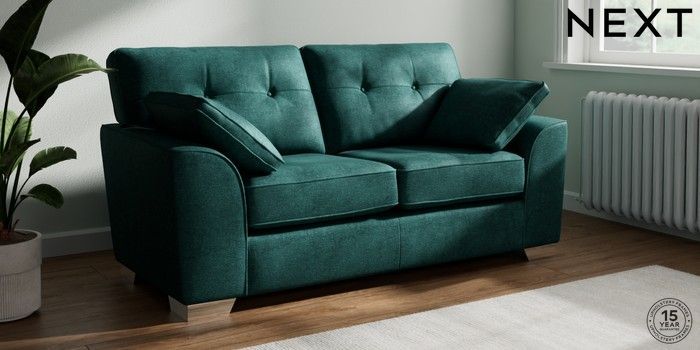 7.2.10 Stamford Buttoned Back 2 Seater Sofa Plush Chenille Dark Teal Green Large Square Angle - Chrome Metal | Made Click here to use our website with more accessibility support, for example screen readers
