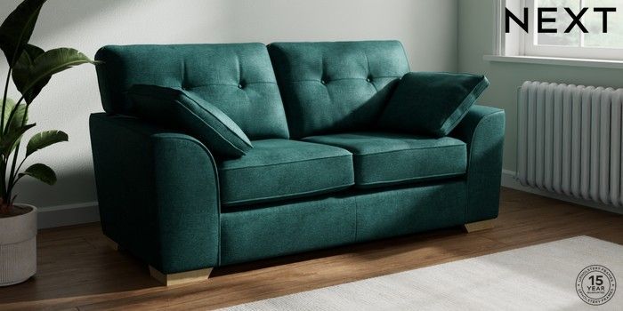 7.2.10 Stamford Buttoned Back 2 Seater Sofa Plush Chenille Dark Teal Green Large Square Angle - Light | Made Click here to use our website with more accessibility support, for example screen readers